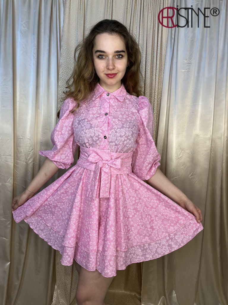 Îmbrățișați feminitatea și gingășia într-o rochie roz cu floricele, disponibilă în magazinul nostru online. Această rochie adorabilă este concepută pentru a vă încânta și a vă aduce un zâmbet pe buze în fiecare moment special.Fabricată dintr-o panză ușoară și delicată, această rochie îmbrățișează cu grație silueta și vă conferă o senzație plăcută la purtare. Fusta dublă și croiul cloș adaugă un volum subtil și mișcare gratioasă la fiecare pas.Detaliile florale subtile adaugă un farmec aparte și un aer romantic, completând perfect nuanța delicată de roz. Pentru a sublinia talia, rochia este accesorizată cu un brâu lat, care adaugă o notă de eleganță și stil.Mânecile 3/4 ușor bufante adaugă un aspect chic și rafinat, oferindu-vă acoperirea dorită și un aer încântător. Alegeți această rochie pentru a străluci și a vă simți cu adevărat specială la fiecare eveniment sau ocazie.