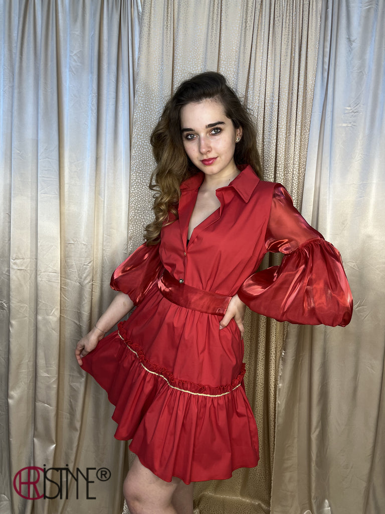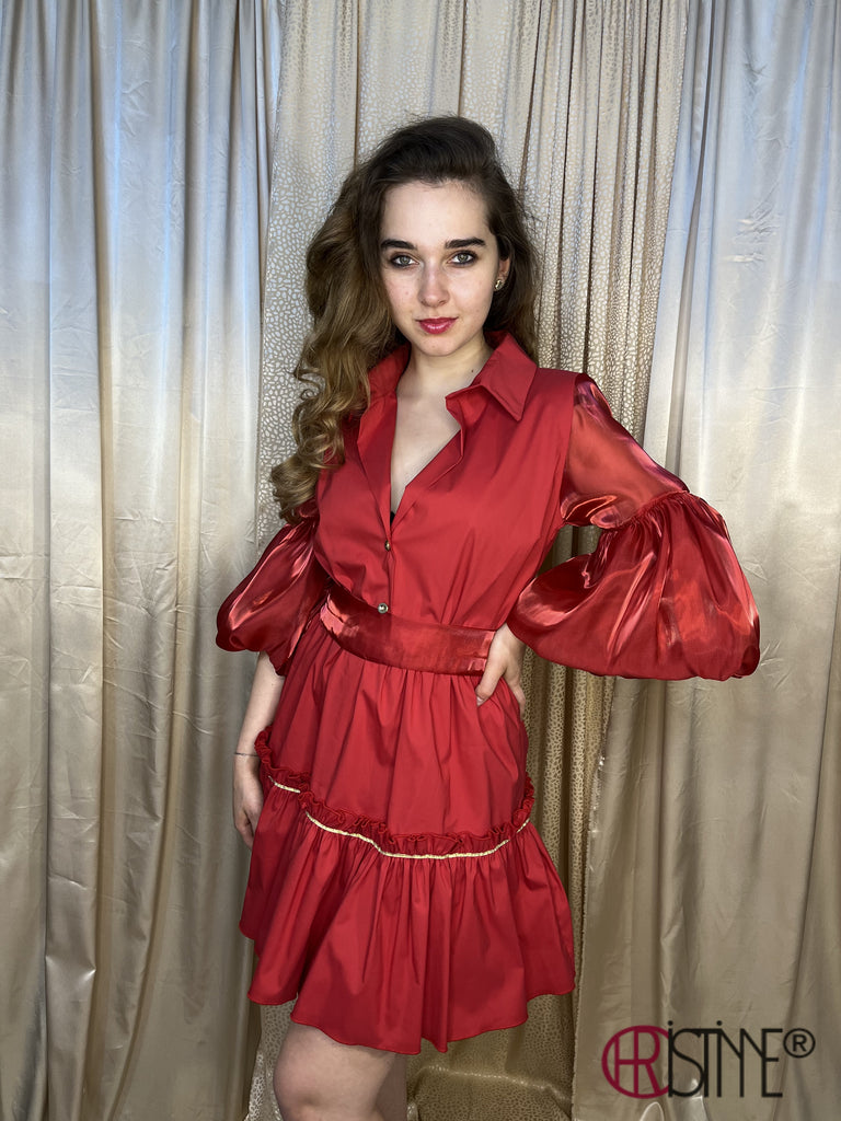 Descoperă eleganța și rafinamentul într-o rochie roșie extraordinară, disponibilă acum în magazinul nostru online. Această rochie fermecătoare va aduce un strop de pasiune și rafinament la garderoba ta.Mânecile bufante din organza adaugă un element dramatic și sofisticat, creând un contrast fermecător cu nuanța vibrantă a rochiei roșii. Aceste mâneci aduc un aer regal și distins, conferindu-ți un aspect nobil și grațios.Fusta este creată cu un volan elegant, care adaugă o notă de mișcare și fluiditate la fiecare pas. Acest detaliu rafinat completează perfect silueta și aduce un aer romantic și feminin întregii rochii.Indiferent dacă o porți la o cină romantică sau la un eveniment special, această rochie roșie te va face să strălucești și să te simți ca o adevărată regină a eleganței. Alege această rochie pentru a-ți încânta și impresiona toți cei din jurul tău.